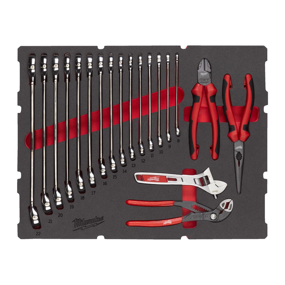 MILWAUKEE® Foam Inlay sleutel en tangenset MAXBITE™ PACKOUT™ (19-delig)