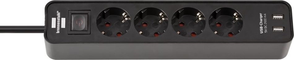 De Ecolor stekkerdoos met USB-laadfunctie van Brennenstuhl in zwart en 1,5 m kabel overtuigt door zijn kwaliteit en veiligheid op alle gebieden. Het heeft niet alleen een hogere contactbescherming, maar overtuigt ook met de volgende kenmerken: Snel opladen van uw aangesloten apparaten dankzij twee geïntegreerde USB-poorten Totale laadstroom max. 2100mA Elegant, slank, tijdloos en hoogwaardig ontwerp Beschermende contactdozen in 45° opstelling, ook voor haakse stekkers Gepolijst oppervlak Verlichte veiligheidsschakelaar, tweepolig aan/uit schakelbaar