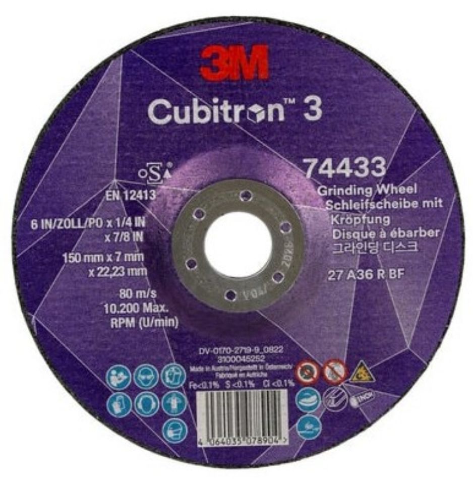 De 3M Cubitron 3 slijpschijf met verlaagd asgat is een uitzonderlijk snel snijdende, stijfgebonden schijf met een lange levensduur voor het verwijderen