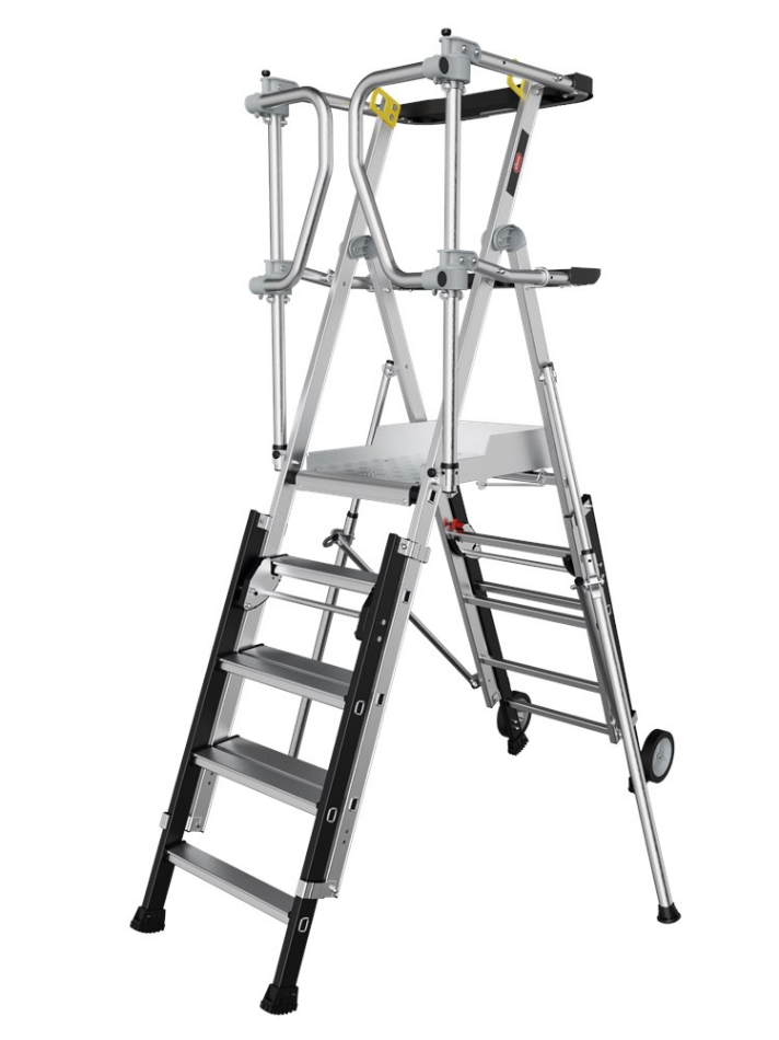 De RolGuard is onze meest geavanceerde platformtrap. Met het extra grote platform van 60 bij 40 centimeter heb je altijd voldoende ruimte om veilig en comfortabel te staan. Dankzij het veiligheidsframe rondom geniet je altijd van 360 graden valbeveiliging en werk je veilig met de handen vrij. De stabilisator draagt daarnaast bij aan extra stabiliteit tijdens de werkzaamheden. Kortom, de perfecte combinatie van comfort en veiligheid.