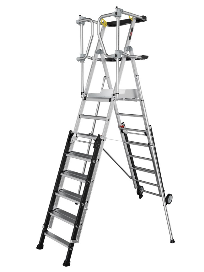 De RolGuard is in hoogte verstelbaar en daardoor flexibel in te zetten. Perfect voor intensief professioneel gebruik met wisselende werkhoogtes of verschil in lichaamslengte. De RolGuard is verkrijgbaar met 3/4, 5/7 of 8/11 treden. Hiernaast is er ook een inklapbare uitvoering beschikbaar: de RolGuard Compact 5/7 treden. Deze platformtrap heeft dezelfde eigenschappen als de reguliere RolGuard met 5/7 treden, met het grote verschil dat deze extra ingeklapt kan worden. Dit vermindert de transport- / opberglengte met 44 centimeter tot slechts 2,18 meter. Hierdoor past deze trap in de meeste transportbusjes en is het extra gemakkelijk te vervoeren.