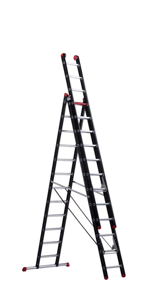 De Mounter reformladder is verkrijgbaar in een 2- en 3-delige uitvoering, in uiteenlopende lengtes tot wel 9,35 meter. De 3-delige reformladder schuif je ook nog eens makkelijk uit door de toprollen.