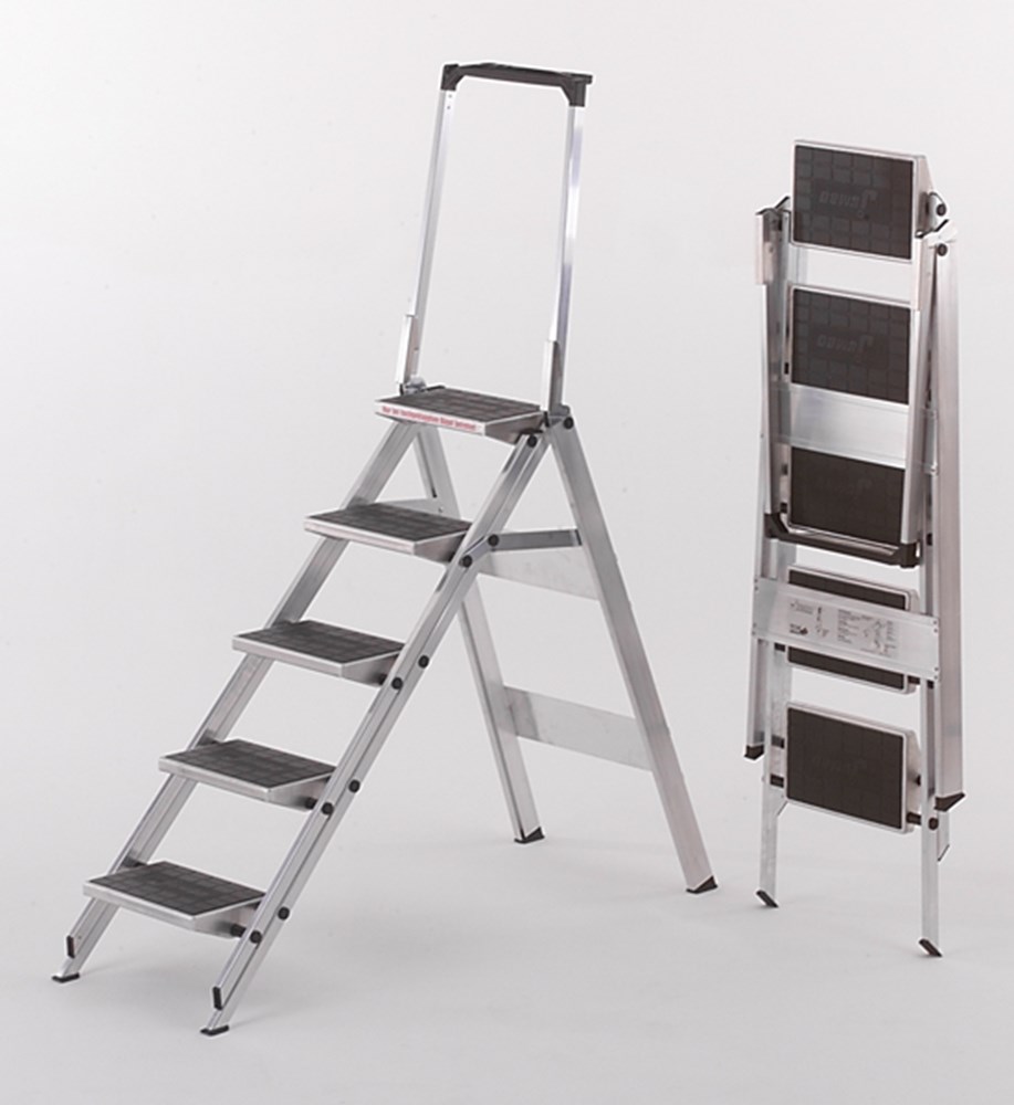 ook op natte vloeren stabiel dankzij grote geribbelde doppen van kunststof aan de uiteinden van de trapbomen