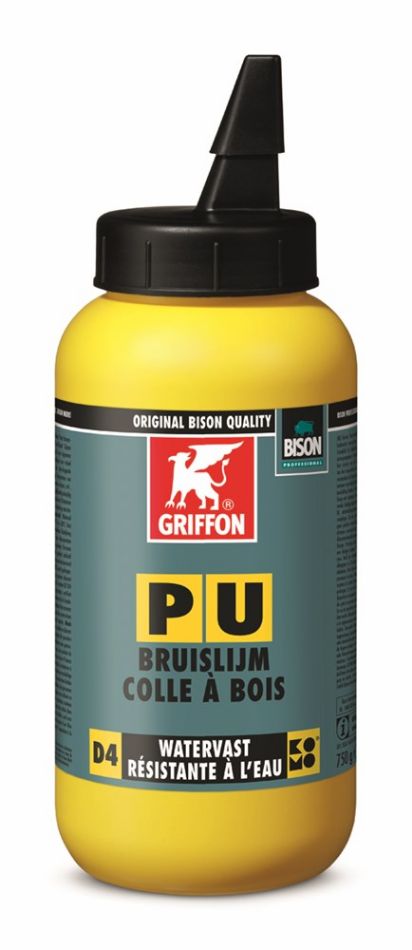 Vloeibare, watervaste, beperkt vullende, 1-component houtlijm op basis van polyurethaan.