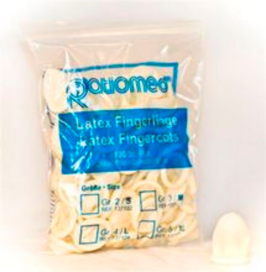 Latex vingerhoesje om de "verbonden" vinger schoon te houden
