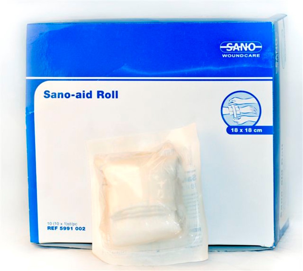 Rolletje elastisch gaas, met in het midden een gaasje van 18 x 28 cm, makkelijk zelf aan te brengen