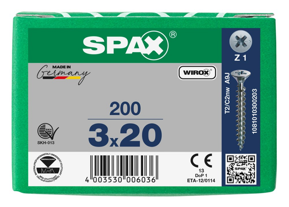 Spax schroeven, 3.0 x 20 mm, platkop, gegalvaniseerd, verzinkt
