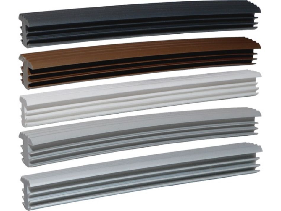 Kunststof infrees trapstrip voor hardhouten trappen. Rollengte 25 m. Afmeting: dikte 8 mm, hoogte 11 mm, antislipprofiel 11 mm. kleur : zwart
