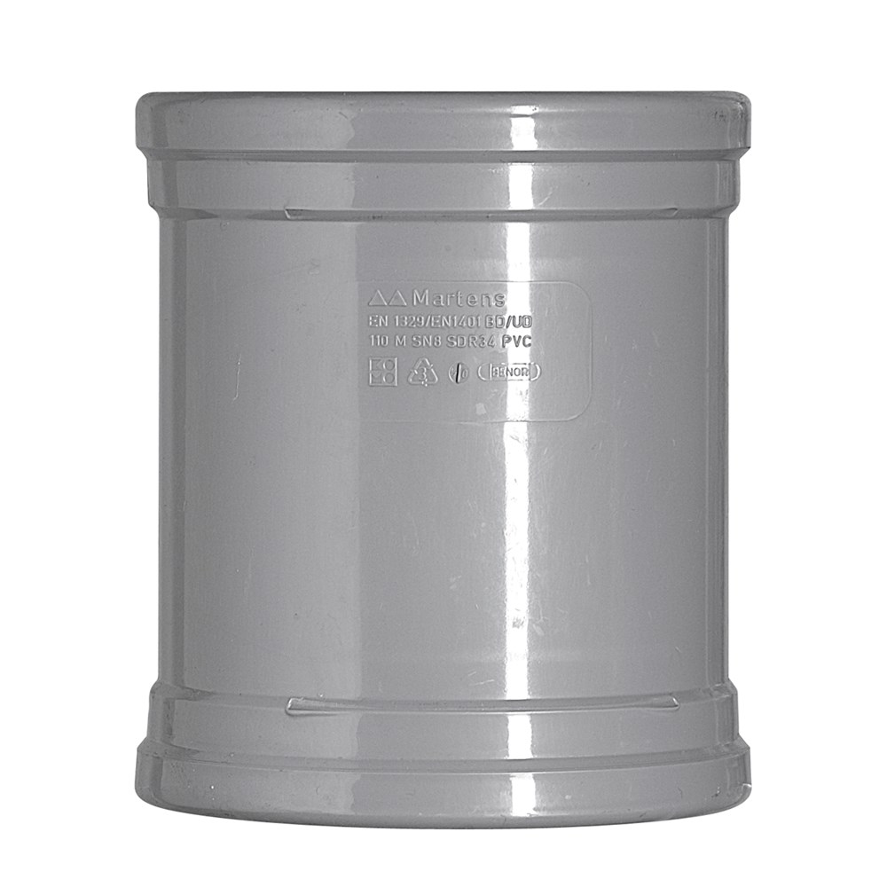 Deze mof is voor de buitenhuisriolering. Voorzien van 2x een manchet. Kleur Grijs.