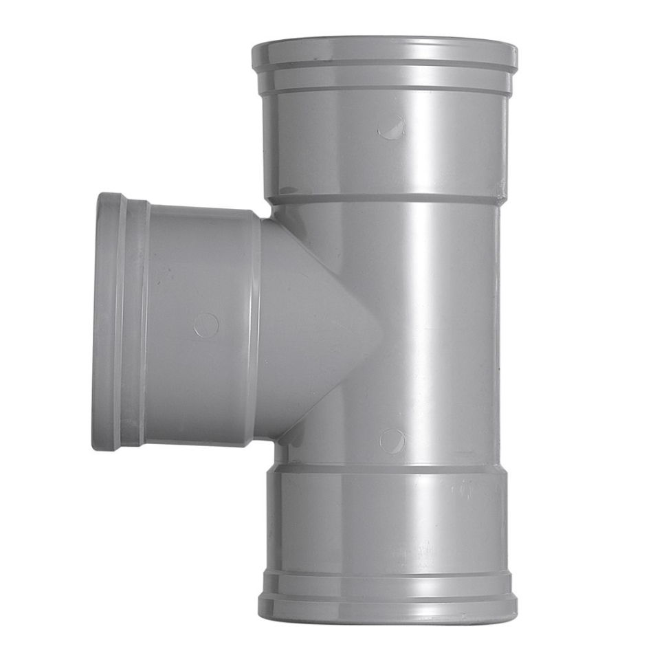 T-stuk, 110 x 110 mm, 90 graden, mof, grijs, pvc