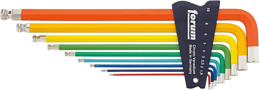 FORUM Haakse stiftsleutelset voor binnen-zeskantschroeven, met kogelkop en kleurcode 9dlg
