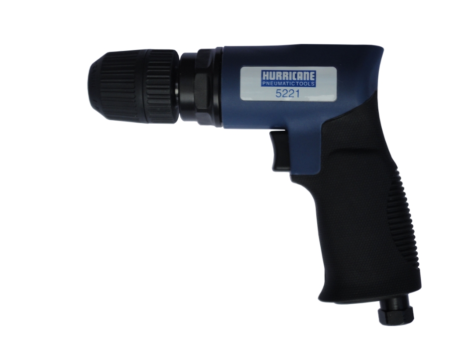 Een lichte en handzame 10 mm boormachine met luchtuitlaat aan de onderzijde, voorzien van een snelspanboorkop.