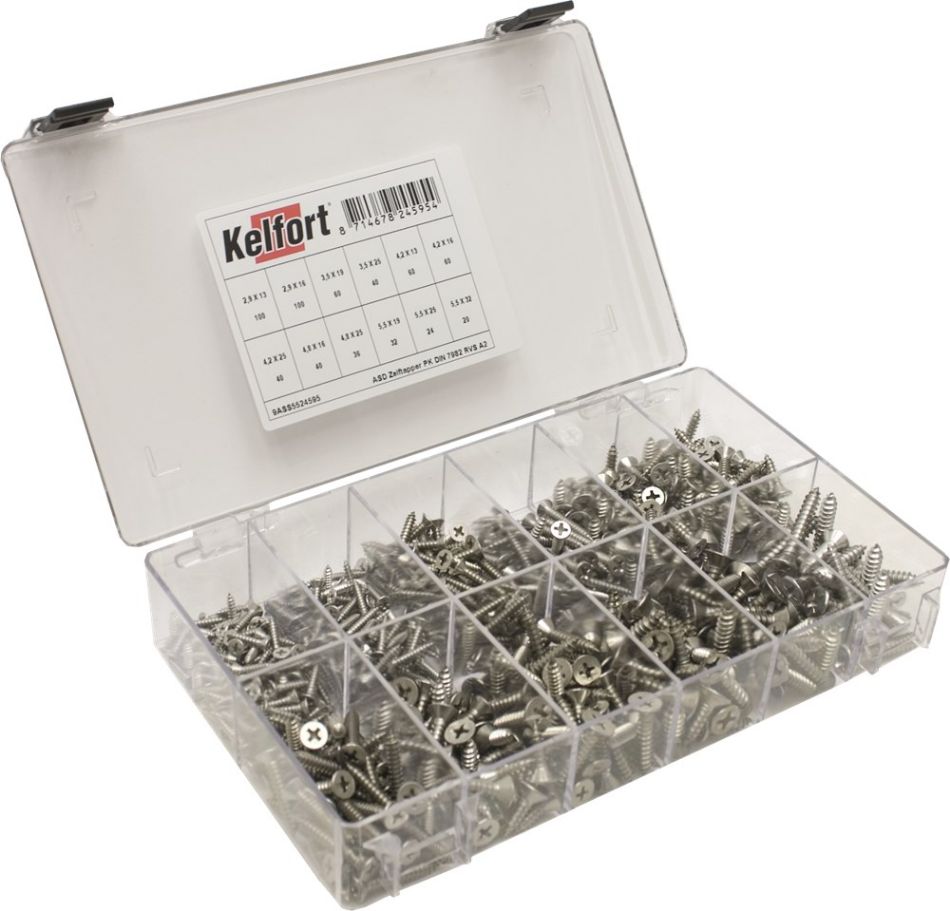 Rvs AISI 304 (A2), plat verzonken, met philips kruis, zelftappend. Volgens DIN 7982.