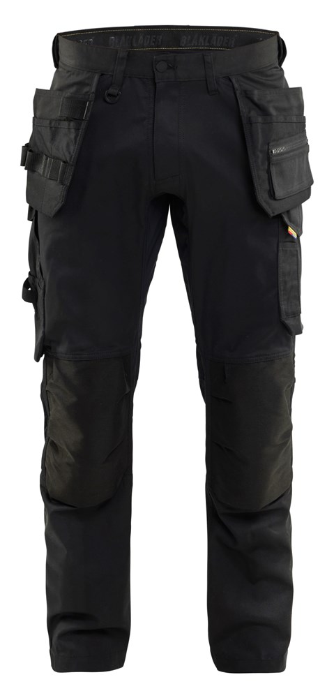 De broek is uitgerust met vaste spijkerzakken, kniezakken van CORDURA®-stretch, praktische zakken met versterking, duimstokzak, voorzakken en lus voor een hamerhouder aan zowel de linker- als de rechterkant.