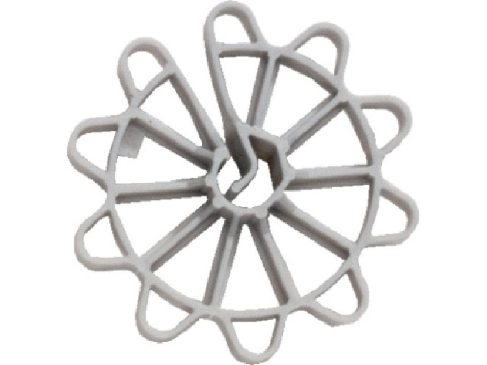 Kunststof, snel en gemakkelijk te monteren. Door vorm geen beschadiging van houten bekisting. staaf Ø mm : 6-12 dekking : 30
