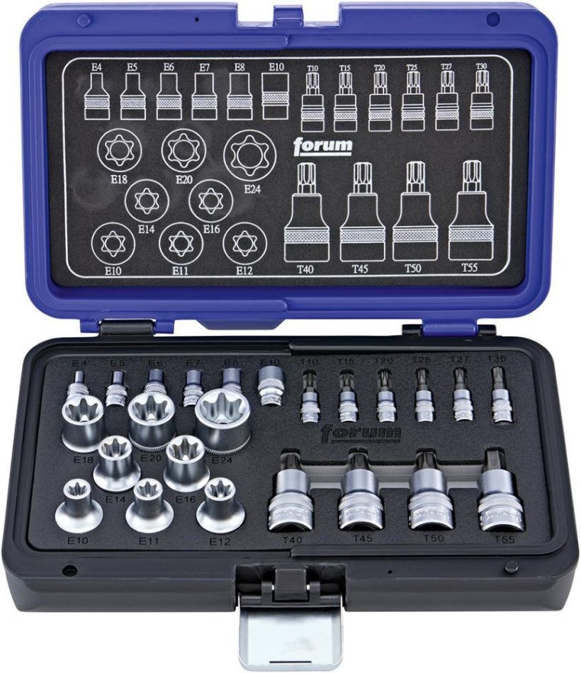 FORUM Dopsleutelschroevendraaierset 1/4" en 1/2" voor TORX®-schroeven, 24 stuks