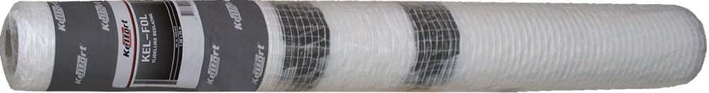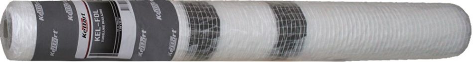 Type KEL-Perfo. Gewapende polyethyleenfolie om tijdens de open bouwfase gebouwen wind- en waterdicht te maken. 80 g/m². Rollengte 25 m.