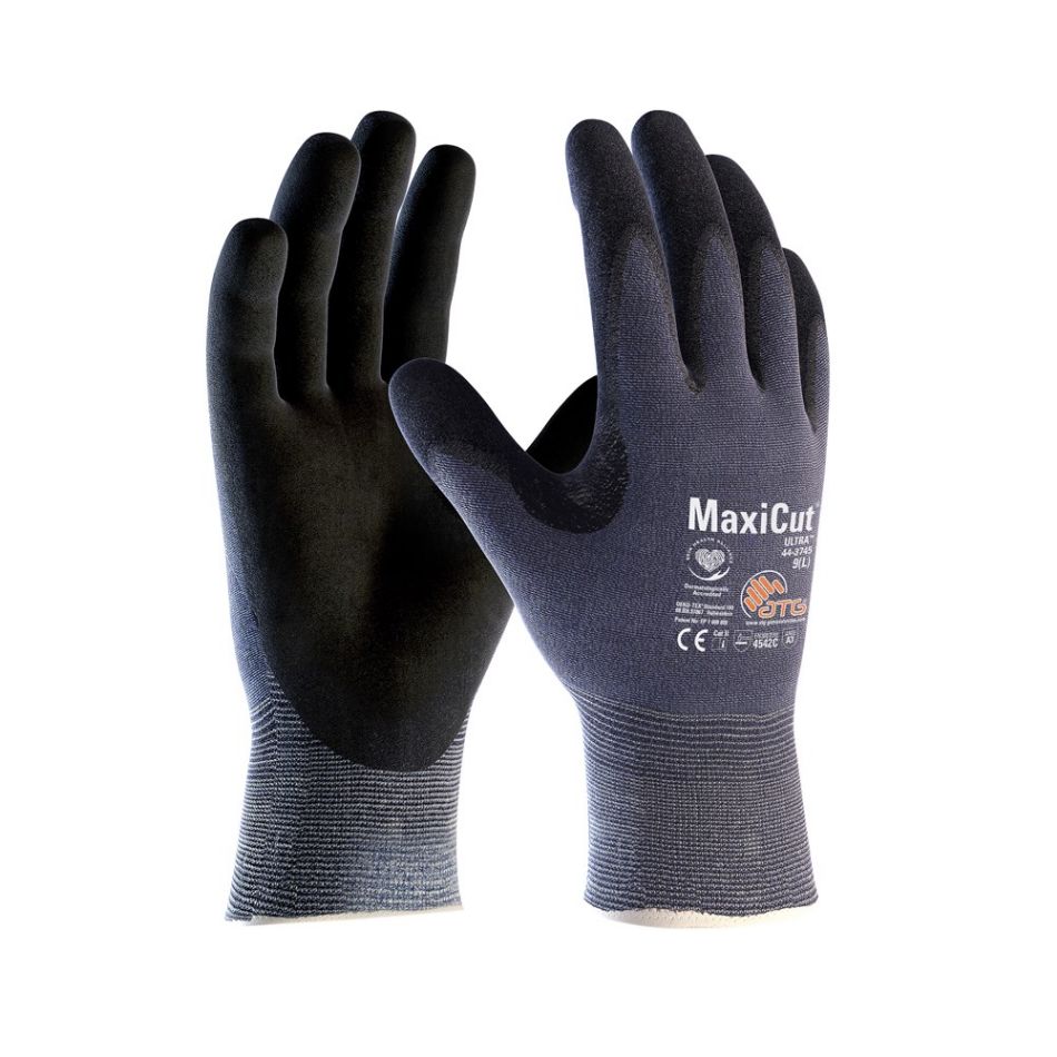 De Maxicut Ultra 44-3745 is een werkhandschoen met een snijbestendige liner en NBR coating. De handschoen biedt een combinatie van snijbescherming, comfort, flexibiliteit en handvaardigheid voor droge omgevingen. De handschoen heeft extra versterking tussen duim en wijsvinger.