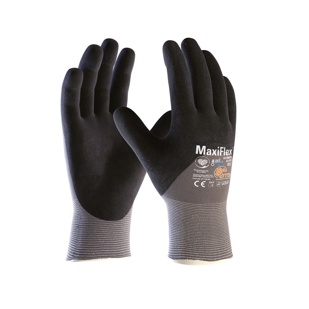 De MaxiFlex Ultimate 42-875 met AD-APT technologie is de opvolger van de 34-875. De toegevoegde AD-APT technologie wordt geactiveerd door beweging en temperatuur van de handen; er komt een stofje vrij welke de handen droog en koel houdt. Zelfs na wassen blijft de AD-APT technologie actief.