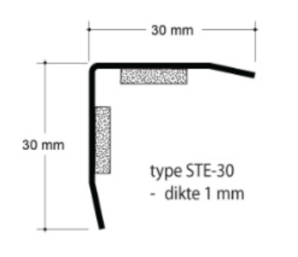 Hoekbeschermer, 30 x 30 x 1 mm, 3 meter, aisi 304, zelfklevend, mat geslepen, rvs