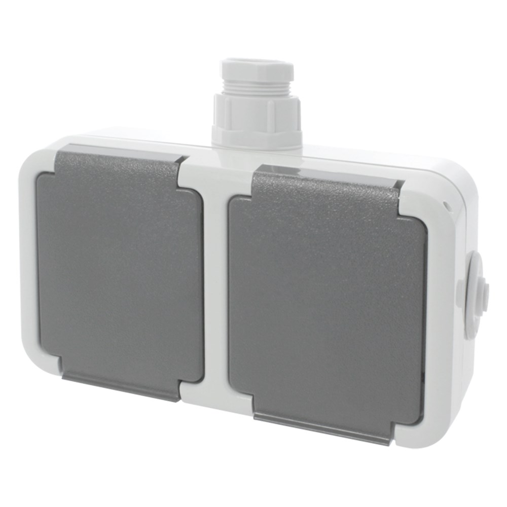 PEHA Contactdoos opbouw wandcontactdoos spatwaterdicht met randaarde, 2-voudig, horizontaal.