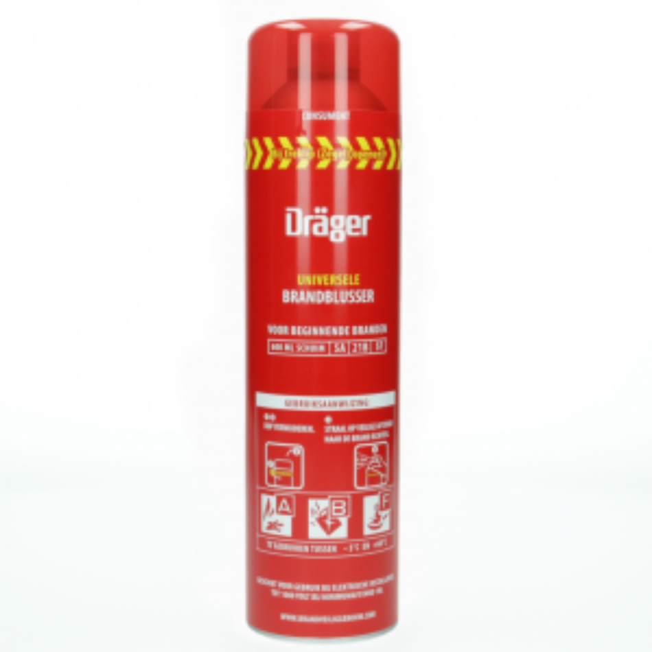 Universele spray brandblusser voor thuis gebruik. Rijkstypekeur: 2490, Blusmiddel: PM-AB (AFFF) (schuim dus geen nevenschade), Afmetingen: hoogte 280 mm, diameter 74 mm, druk: 9,5 bar, worplengte 3,5 tot 4 meter, blustijd: 25 seconden, bluscaspaciteit: 5A / 21B / 5F ( ook geschikt voor (frituur) vet), vorstbestendig tot: -5, inhoud 600 ml, gewicht: Ca. 830 gram, houdbaar/ garantie (datum): 3-4 jaar, geen onderhoud en geen keuring nodig, Met interval blusmogelijkheden, kan onder schuine hoek blussen. Bluseffect zeer effectief vanwege speciale spuitkop welke gepatenteerd is. Kiwa en GS goedgekeurd en gekeurd volgens Europese EN 3-7 en de Britse BS 6165-2002 norm.