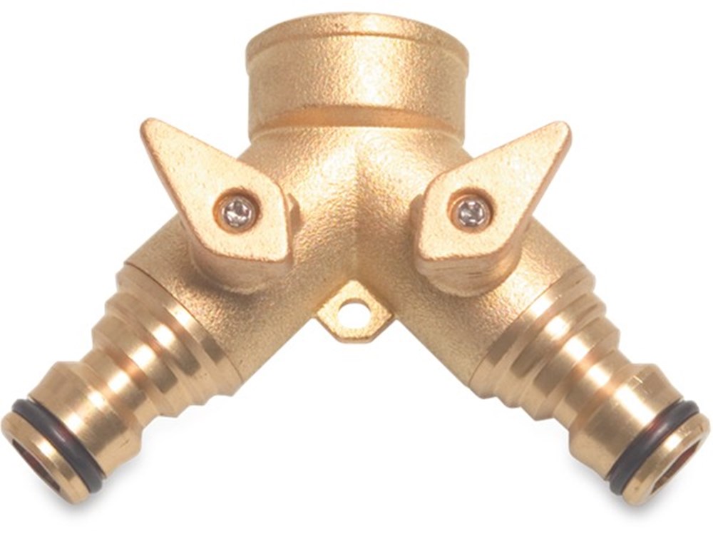 Hydro-Fit Y-stuk messing 3/4" binnendraad x mannelijk klik x mannelijk klik type met kogelkraan.