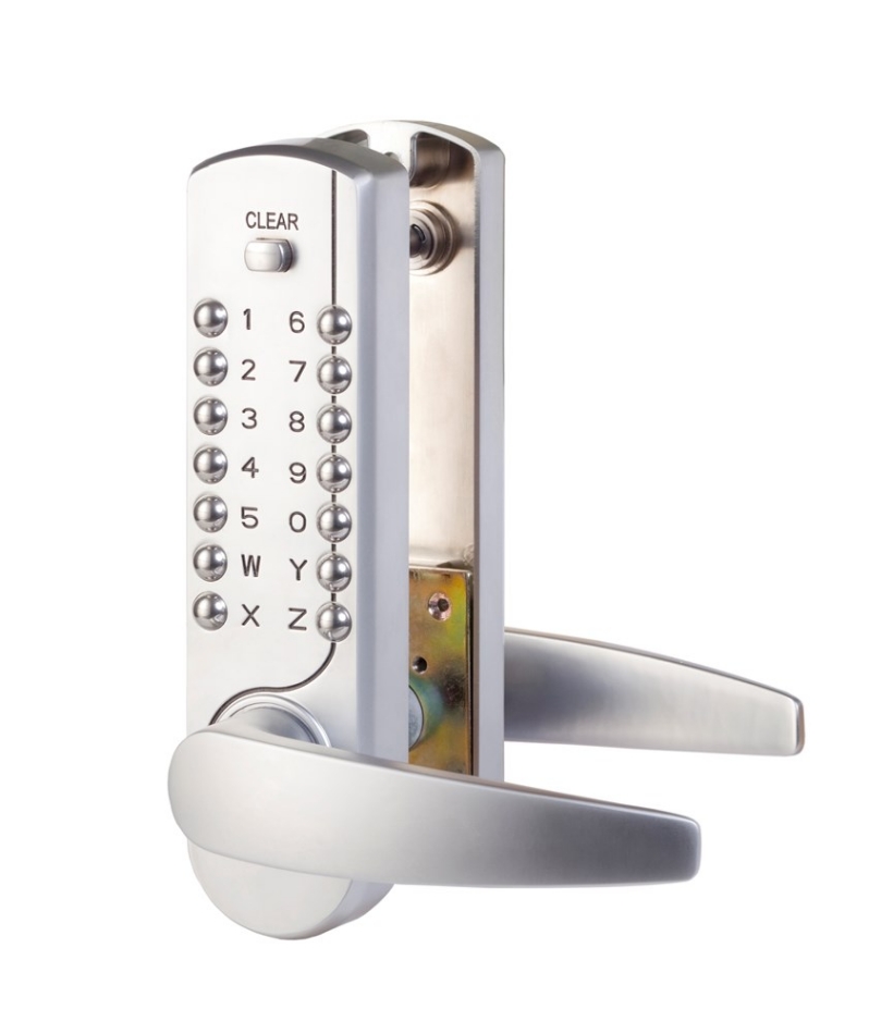 Deze stijlvolle en robuuste mechanische codesloten zijn toe te passen op bestaande DIN sloten. Door het intoetsen van de juiste code is de kruk te bedienen en kan de deur worden geopend. Na het openen van de deur vergrendelt deze na het sluiten automatisch. Vanuit de binnenzijde is de deur altijd via de kruk mechanisch te openen.