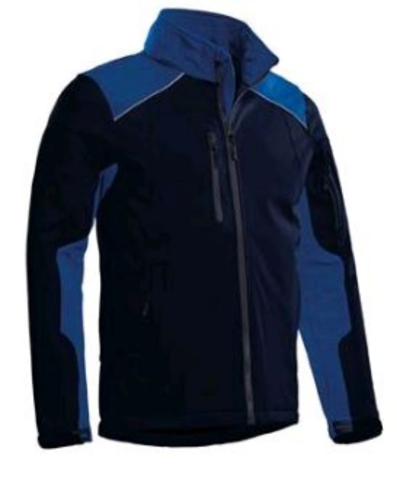 Jack uit de 2Color-line - 3 laags Dryprotex® Softshell; winddicht, waterdicht en ‘ademend’, zwarte microfleece voering, schouderstuk in contrastkleur, op achterzijde kenmerkende "2Color Curve", zwarte fleece voering, twee met rits afsluitbare steekzakken, afsluitbaar zakje op de linkermouw,
