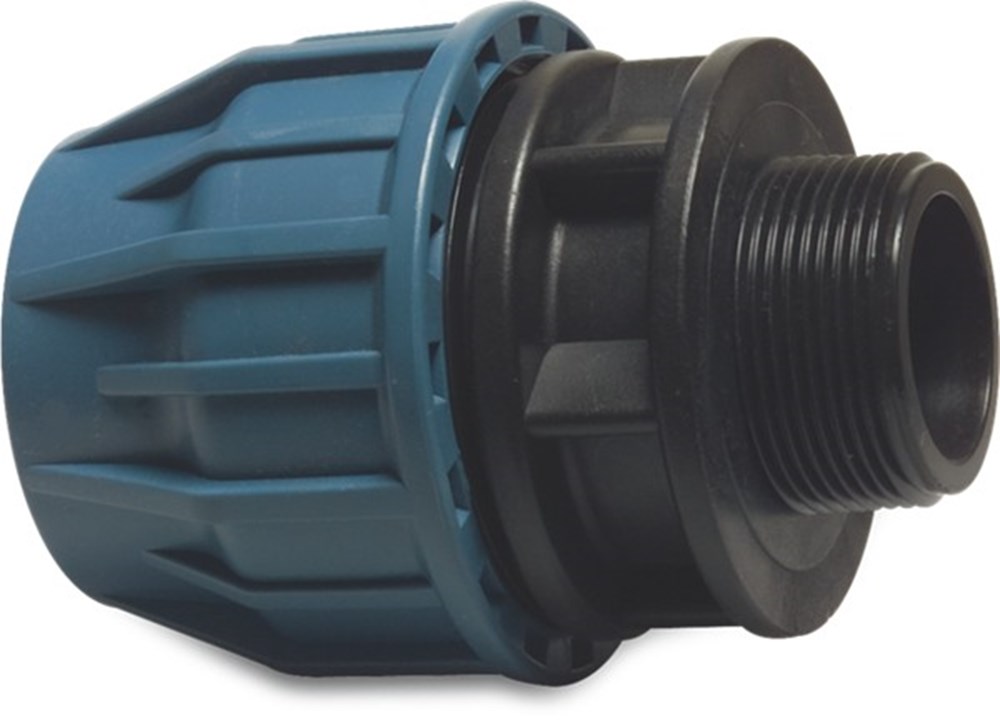 Jason Aansluitstuk PP 32 mm x 3/4" knel x buitendraad 16bar zwart/blauw DVGW/KIWA/WRAS.