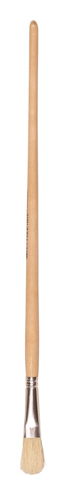 Platte uitvoering, wit varkenshaar, gesoldeerde bus, ongelakte steel.