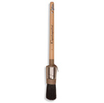 Synthetische witte bezetting, messing bus, katoenen woeling, blank gelakte houten steel. o.a. voor verf op waterbasis.