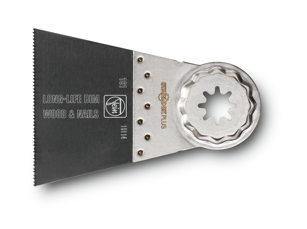 E-Cut Long-Life-zaagblad SLP 50x65 - Bimetaal met geschrankte houtvertanding voor alle hout-, gipsplaat- en kunststof materialen. Uitstekende levensduur, hoge zaagkwaliteit en een goede zaagsnelheid. Uiterst robuust, ook ongevoelig voor spijkers die in hout zitten (tot ca. Ø 4 mm), metselwerk enz.