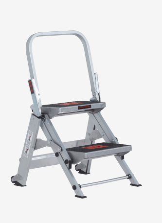 De Safety Step heeft twee wielen, wat handig is als je de trap vaak moet verplaatsen. Met de steunbeugel heb je extra grip. Bovendien geeft het bakje in de beugel je een plek voor je gereedschap (m.u.v. de 2-treeds).