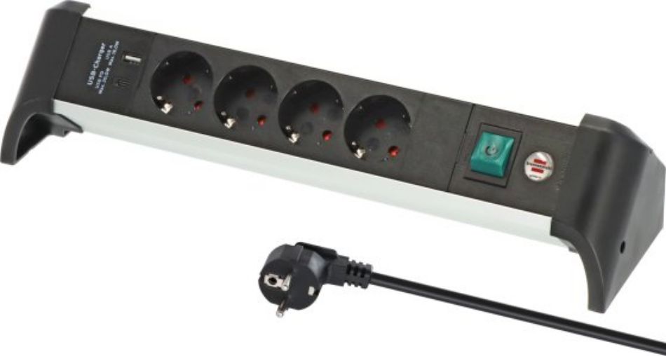 De stekkerblok met antislipvoetjes is ideaal voor gebruik thuis of op kantoor om aangesloten apparaten direct op het bureau van stroom te voorzien
