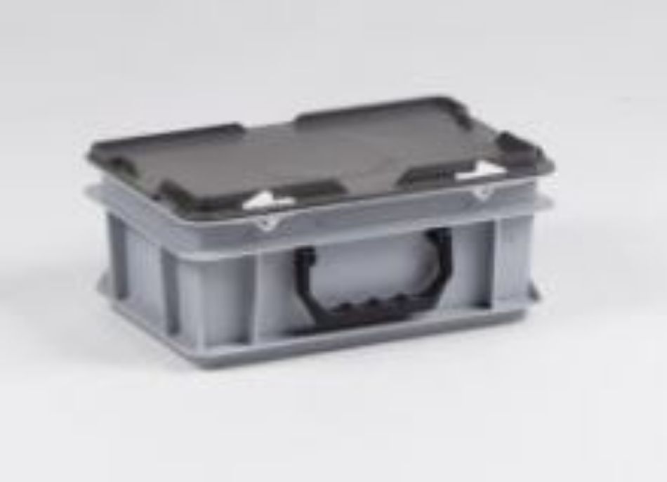 Gesloten bodem en wanden, scharnierdeksel (donkergrijs), met snapsluitingen en scharnierverstevigingen, met lichte Kunststof koffergreep op 1 lange zijde
