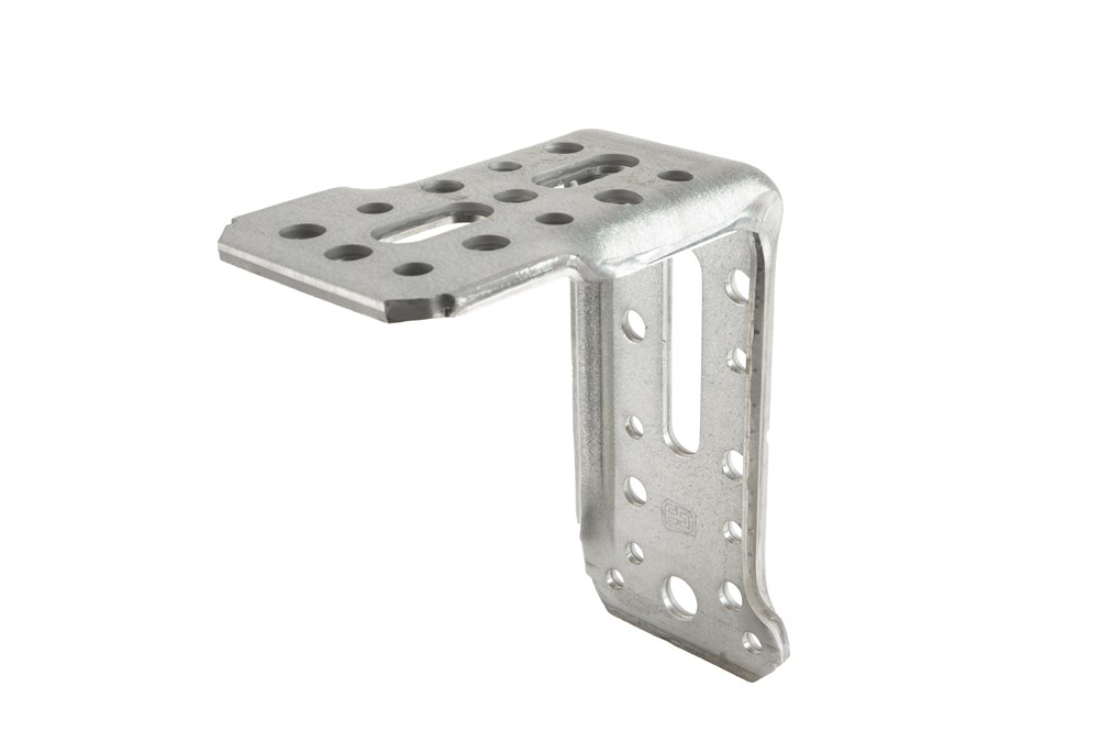 Zwaar hoekanker, extra versterkt met zijrillen. Uitgevoerd met een veelzijdig (slob)gatenpatroon. Uitermate geschikt voor de verankering van zware kozijnen.