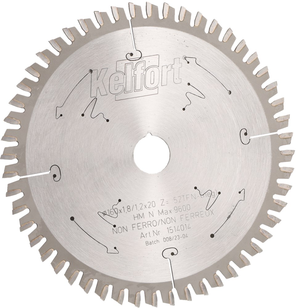 Gebruik : Een cirkelzaagblad met een negatieve spaanhoek. De trapeziumtand snijdt het materiaal voor en de vlaktand snijdt het restant in de hoeken weg. Dit type zaagblad is uitstekend geschikt voor afkorten en formateren van non-ferrometalen, Volkern kunststoffen(profielen en platen) en Trespa®-achtige materialen. Machine : Hardmetaal belegd voor handcirkelzagen, afkort en tafelzaagmachines en snoerloos gereedschap. Accumachine : Voor dunne zaagsnede daardoor ideaal i.cm. met accu/gereedschap. Uitvoering : TFN : Trapezium Vlaktand Negatieve spaanhoek voor minder versplintering. Cirkelzaagbladen met veel tanden. Hoe fijner de vertanding, des te mooier het zaagbeeld.