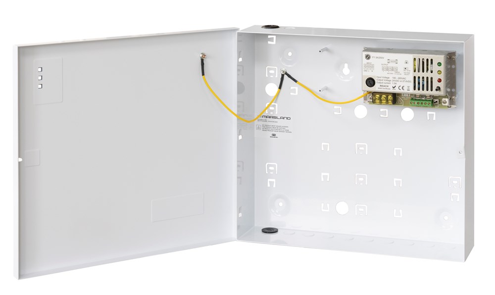 Deze schakelende voedingen in stevige plaatstalen kast transformeren 230V naar 24V=, leveren 1,5 ampère, 5 ampère of 10 ampère en zijn gestabiliseerd. Dit zorgt voor een constante uitgangsspanning. Voorzien van led indicatie, aansluiting voor een accu (noodstroomvoorziening), sabotagecontact en keuzeschakelaar voor 24V of 27,6V. Wordt geleverd met een 1,5 meter lange randaarde netsnoer met haakse stekker. Optioneel te leveren met een print voor aansluiting op de brandmeldcentrale. Voor het 5 ampère en 10 ampère model is optioneel een print te leveren voor het signaleren van de voeding en de accu. Deze print is voorzien van 2 potentiaalvrije relaisuitgangen. Voor het 10 ampère model is optioneel ook nog een print met 5 x 1A en 5 x 2A gezekerde uitgangen te leveren.