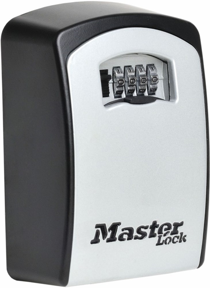 Weerbestendige sleutelkluis van Masterlock. De sleutelkluis heeft 4 variabel instelbare cijfers. XL uitvoering. Gietijzeren metalen behuizing. Voor bevestiging aan de muur.
