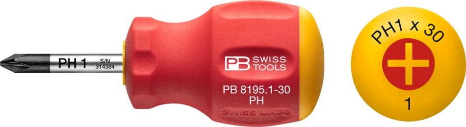 SwissGrip Stubby schroevendraaier voor Phillips-schroeven. Kort hecht en korte kling, ideaal voor krappe ruimtes. Precieze en maatnauwkeurige punten, optimale passing in de schroeven.