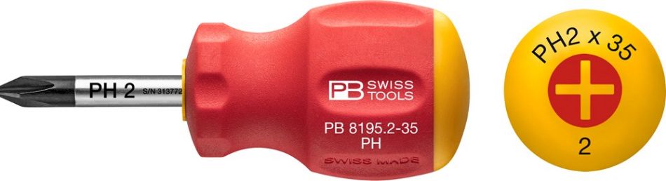 SwissGrip Stubby schroevendraaier voor Phillips-schroeven. Kort hecht en korte kling, ideaal voor krappe ruimtes. Precieze en maatnauwkeurige punten, optimale passing in de schroeven.