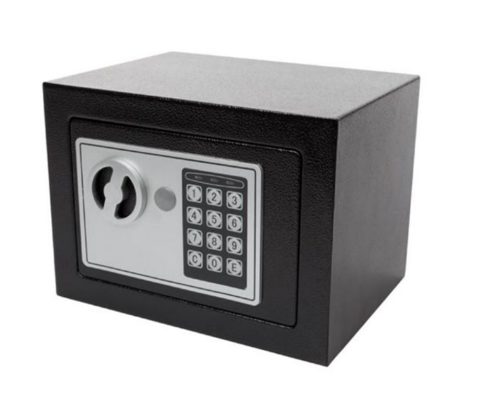 Elektronische kluis met cijfercode en noodsleutel, compacte stalen geldkluis met zachte binnenvoering, mini safe voor sieraden, documenten en contant geld, 17x23x17 cm