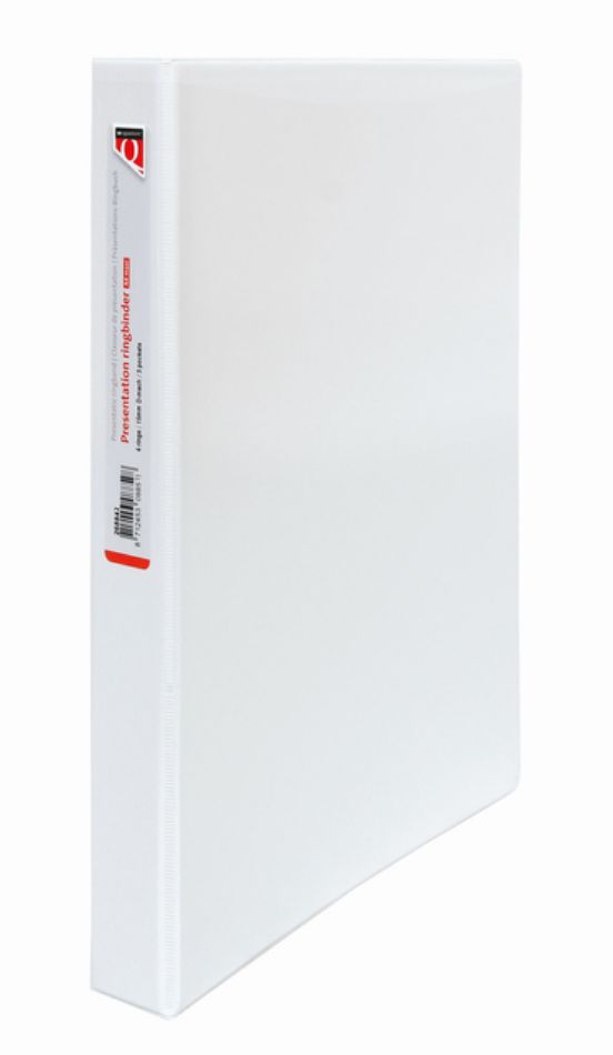 Ontdek de Quantore presentatieringband in A4-maxi formaat, de perfecte oplossing voor het stijlvol organiseren en presenteren van je documenten. Dankzij het robuuste 4-rings D-mechaniek van 25 mm biedt deze ringband maximale capaciteit en betrouwbaarheid. Personaliseer je cover met de 3 insteekhoezen aan de buitenkant en bewaar extra notities in de 2 binnen hoezen. De tijdloze witte kleur en duurzame PP-afwerking maken dit de ideale keuze voor professionele presentaties en vergaderingen. Maak een blijvende indruk met deze elegante en efficiënte ringband!