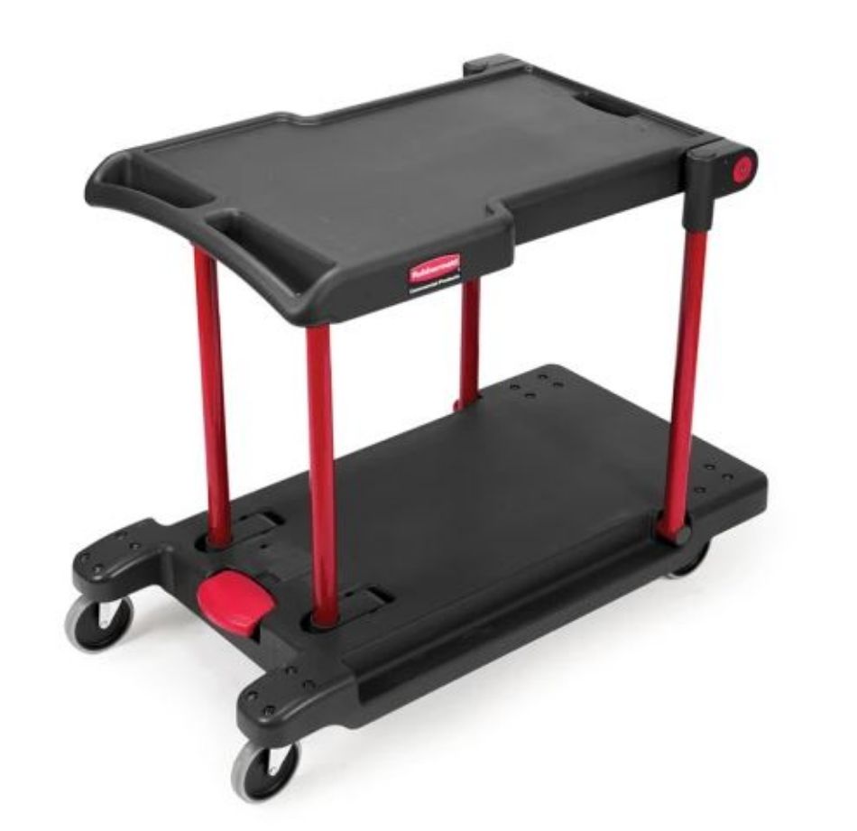 Multifunctionele servicewagen die kan worden getransformeerd van een materiaalkar naar platformwagen. Innovatief design wat de productiviteit verhoogd en werklast vermindert. Op het platform kan een gewicht geplaatst worden van 68 kilogram en op het onderste platform 114 kilogram. De servicewagen beschikt over een ergonomische greep, wielen (2 vaste, 2 zwenkbare), smal profiel en opstaande randen.
