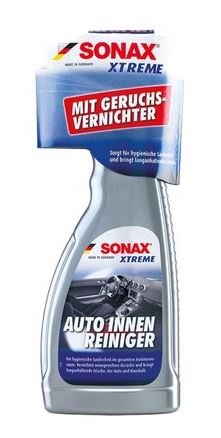 De hygiëne reiniger met geurverwijderaar. Reinigt grondig en verwijdert zelfs hardnekkige vervuilingen van deurpanelen, stoelen, bekleding, kunstofhemels en zonnedaken. Geeft een frisse lucht in de auto en is bacteriën dodend..