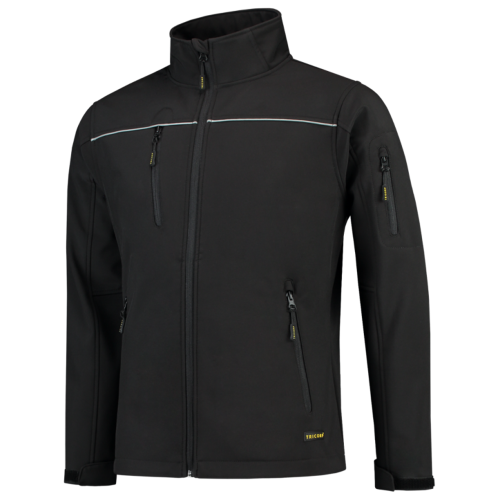 Een softshell is een soepele, comfortabele jas die ook waterafstotend en winddicht is. Het materiaal is gemaakt van een gewoven polyester. Het gebruik van een PU tussenlaag zorgt ervoor dat het ademend vermogen optimaal blijft en je dus niet gaat zweten. De rekbare stof zorgt ervoor dat je je bewegingsvrijheid behoudt. De softshell bevat stretch voor extra draagcomfort. Tevens is de jas beter zichtbaar door de reflectiepiping op de borst. Dit kledingstuk is voorzien van een gelamineerde rits voor een luxe uitstraling. De onderzijde van de jas is middels een elastisch koord met stoppers te verstellen en de manchetten zijn door middel van klittenband te verstellen. De Softshell is aan de voorzijde voorzien van 4 zakken en biedt daardoor veel opbergmogelijkheden. Ook heeft deze jas een binnenzak welke gebruikt kan worden voor het opbergen van de telefoon. Om doorbloeden te voorkomen raden wij aan om alleen druktechnieken te gebruiken die geschikt zijn voor softshell stoffen.