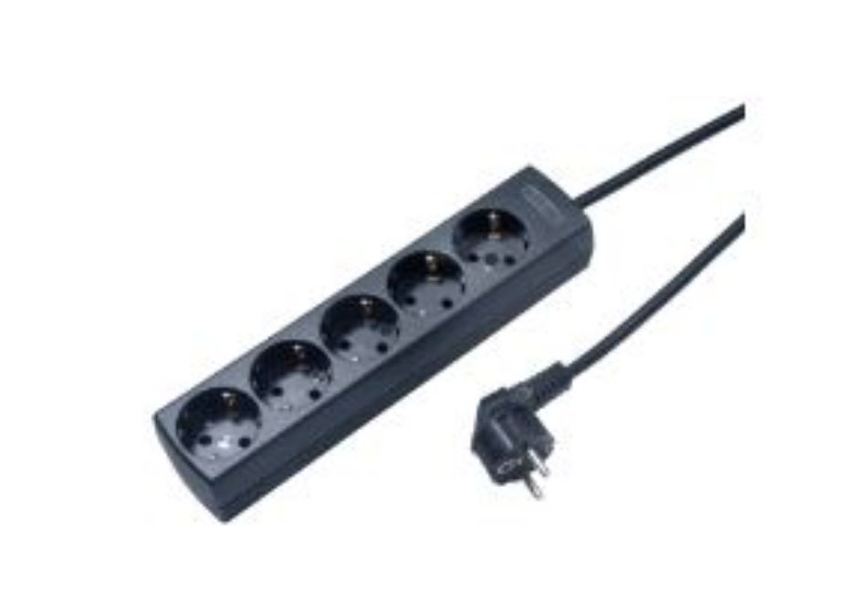 Tafelcontactdoos zwart randaarde 5-voudig 3.0 meter kabel, zonder schakelaar