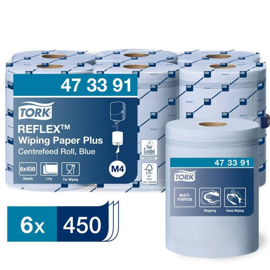 Tork Reflex Centerfeed Wiping Paper is multifunctioneel, absorberend poetspapier dat gebruikt kan worden voor zowel het opnemen van vloeistoffen als het schoonmaken van de handen.