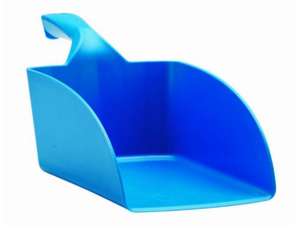 De Vikan Hygiene handschep is licht van gewicht en is gemaakt uit één stuk. Hierdoor krijgen bacteriën minder kans en kun je de handschep makkelijker schoonmaken. Door de grote inhoud van 2 liter kun je grote hoeveelheden droge of vochtige ingrediënten (o.a. meel, bloem, zout, suiker, korrels) tegelijk scheppen. Ook verkrijgbaar in een metaaldetecteerbare versie.